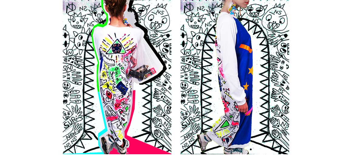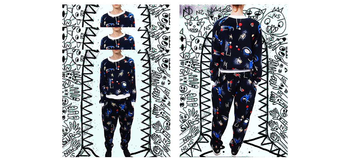 Collection of clothes for unique personalities to wear on special occasions for instance when you feel bored with your life and if you want to feel 'out of space'. Sport, fun, naked body and universe. Hand painted dress! This collection was shown Off Fashion Show.